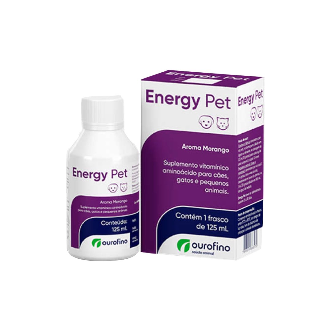 Energy Pet é um suplemento vitamínico aminoácido com sabor de morango, que contém em sua fórmula aminoácidos e vitaminas