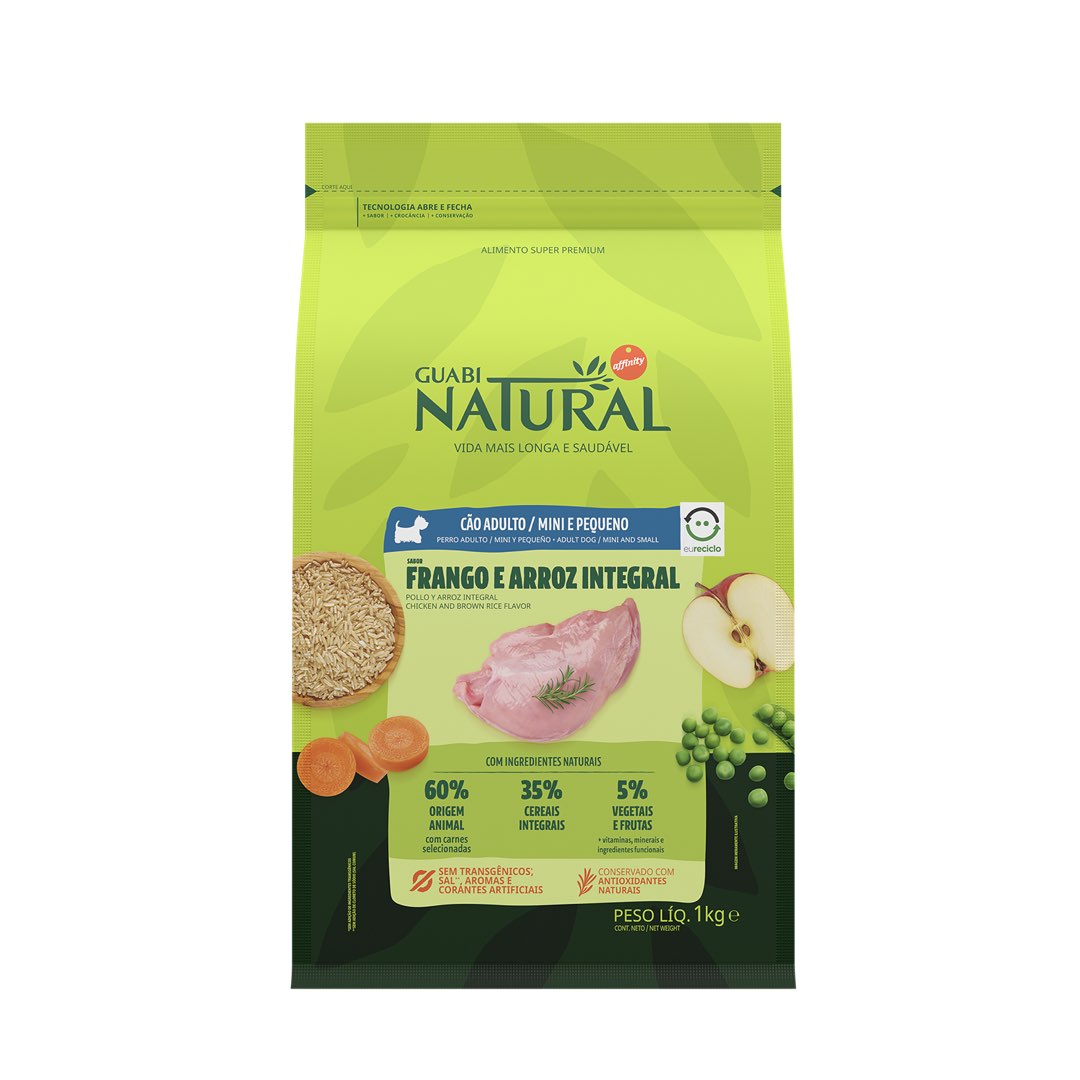 RAÇÃO GUABI NATURAL CÃO ADULTO MINI E PEQUENO FRANGO E ARROZ INTEGRAL
