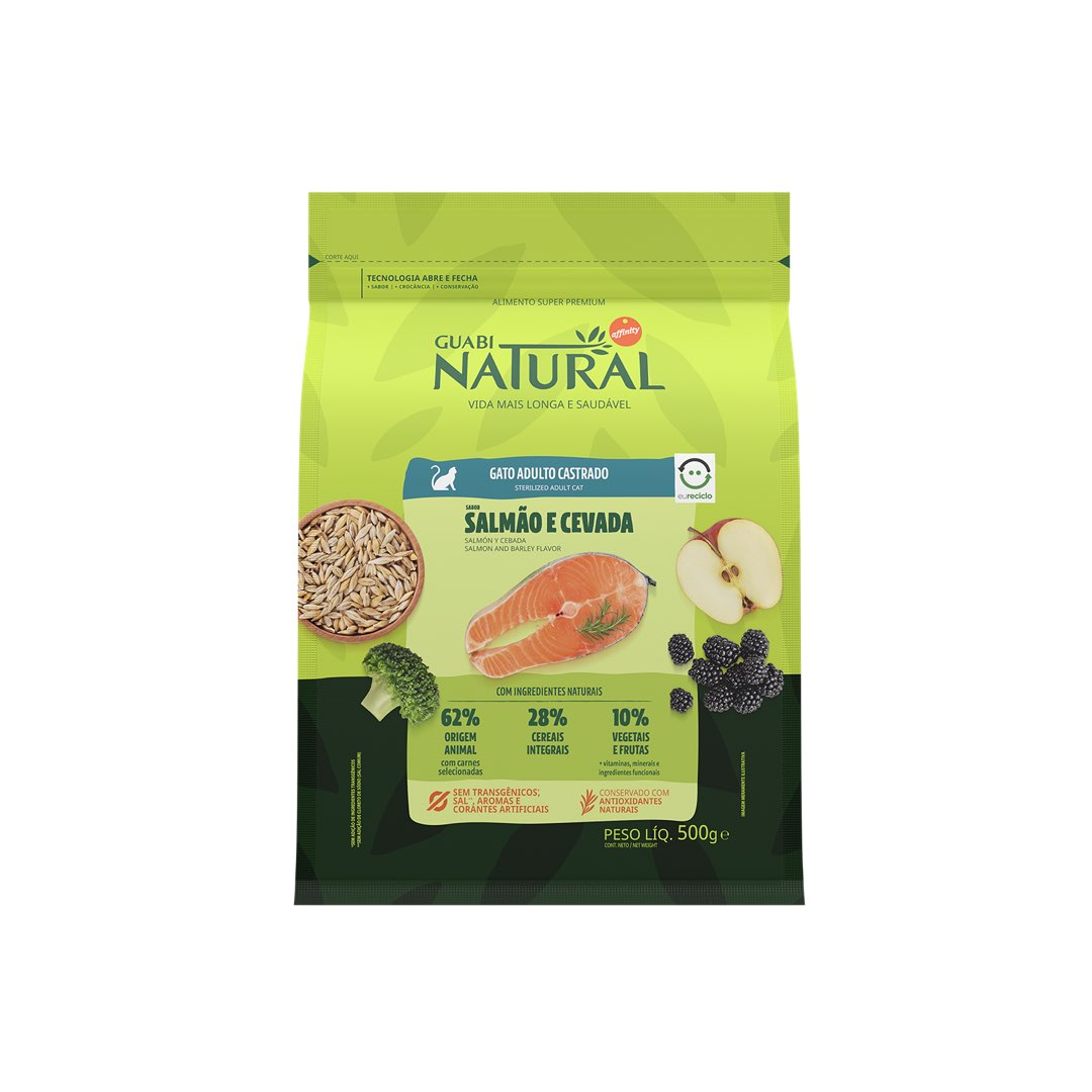 RAÇÃO GUABI NATURAL GATO ADULTO CASTRADO SALMÃO E CEVADA