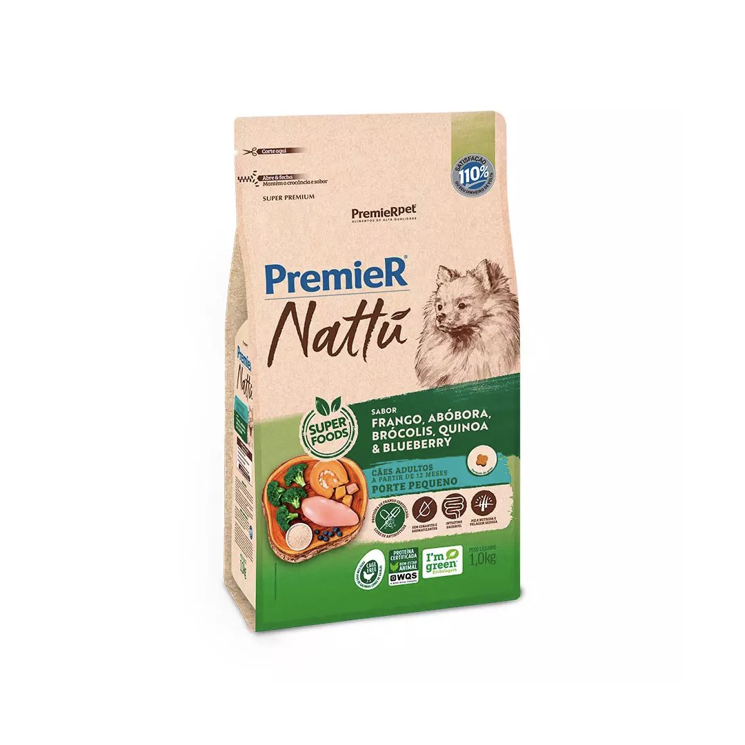 RAÇÃO PREMIER NATTU CÃES ADULTOS PORTE PEQUENO SABOR ABÓBORA